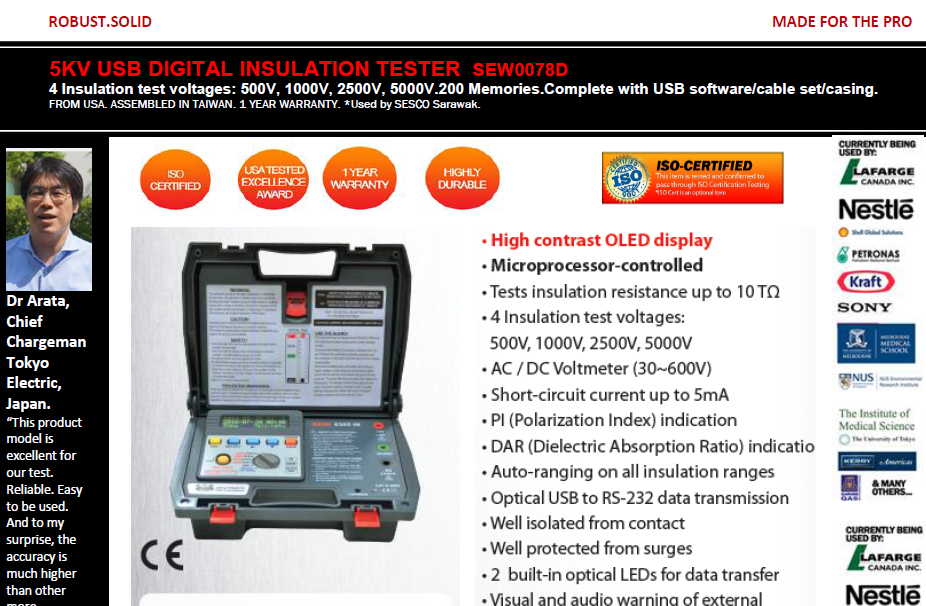 Featured item SEW0078D-5KV USB DIGITAL INSULATION RESISTANCE TESTER DATALOG W SOFTWARE (3125/3127 SAME)-63054V2
