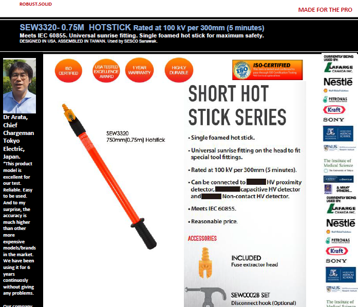 Featured item SEW3320- 0.75M SHORT HOTSTICK Rated at 100 kV per 300mm (5 minutes)