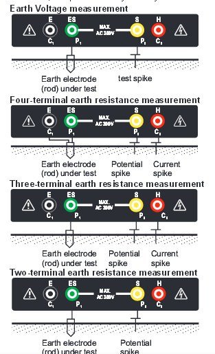 ● Earth testing at 2Ω, 20Ω, 200Ω, 2000Ω.